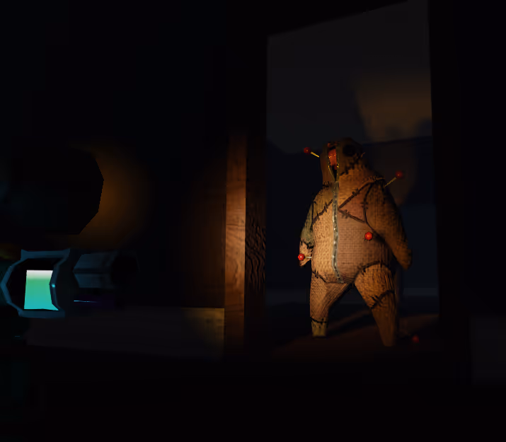 Lighting plays a central role in the experience. Most of the environment remains in darkness, with the primary source of light coming from the Rangers themselves. Designed with lamp-shaped heads, these small cleaners literally illuminate the path forward, turning the act of exploring into a balance between visibility and vulnerability. As players move through the building, their light reveals the environment piece by piece, reinforcing the constant feeling of suspense.