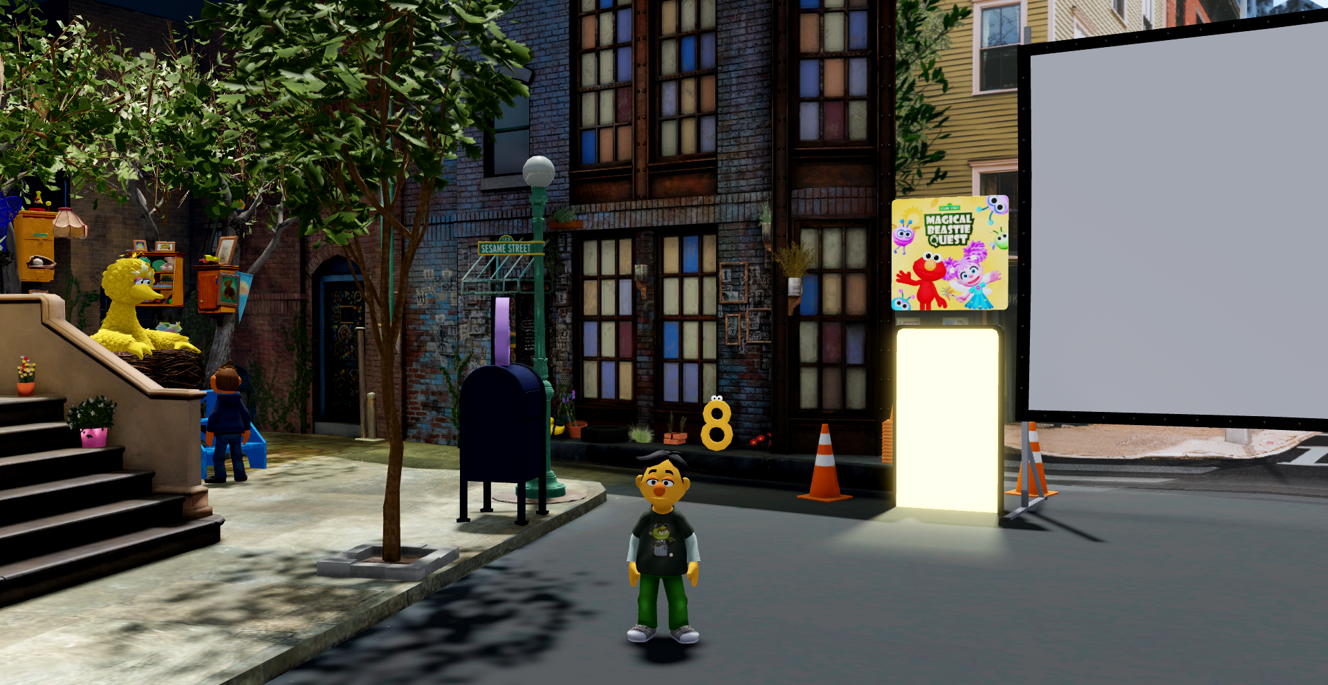 Players can create their own Sesame Street-inspired avatar and explore the neighborhood while collecting hundreds of fun stickers. They can interact with classic characters, check Big Bird’s mailbox for special messages, watch Sesame Street videos on a virtual big screen, and unlock cosmetic items by completing playful minigames. Everything is built around a joyful loop of exploration, collection, and discovery.